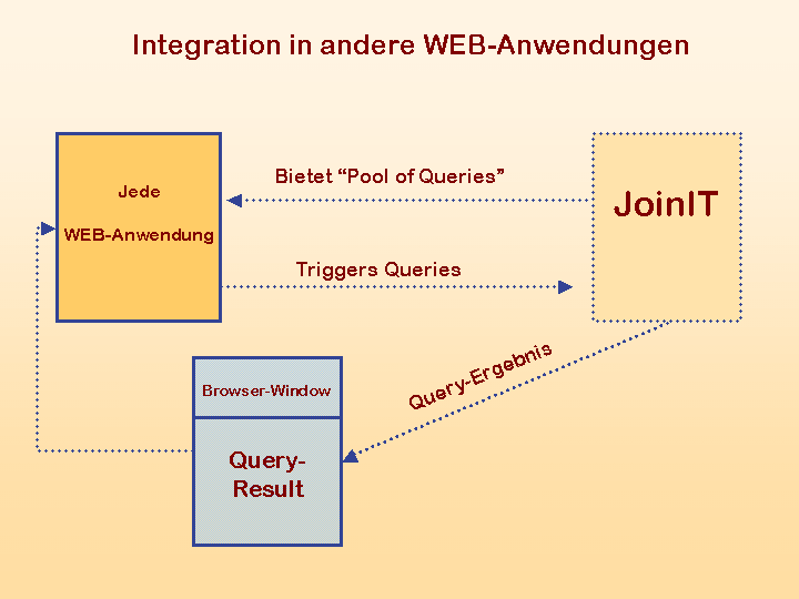 JoinIT veredelt Ihre neuen und bestehende WEB-Anwendungen! Informationen und Daten fremder Anwendungen können in Ihre WEB-Anwendungen integriert werden.
